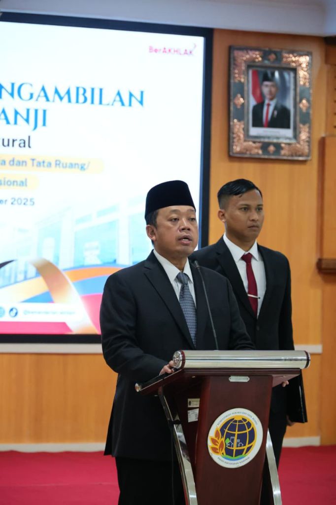Semarang – Menteri Agraria dan Tata Ruang/Kepala Badan Pertanahan Nasional (ATR/BPN), Nusron Wahid, melantik 24 Pejabat Struktural di lingkungan Kementerian ATR/BPN, Jumat (12/09/2025). Para pejabat terlantik diingatkan oleh Menteri Nusron untuk menjalani tugas melayani dengan hati dan mendedikasikan diri kepada masyarakat.